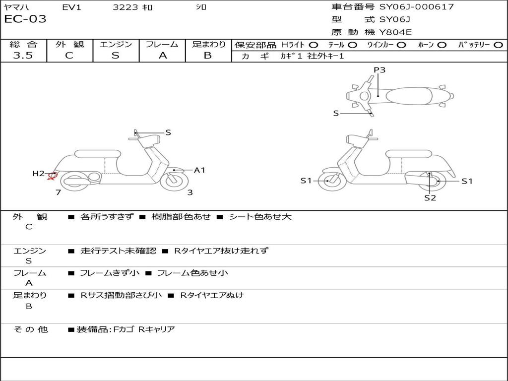 | Номер рамы / VIN | SY06J-000617 |