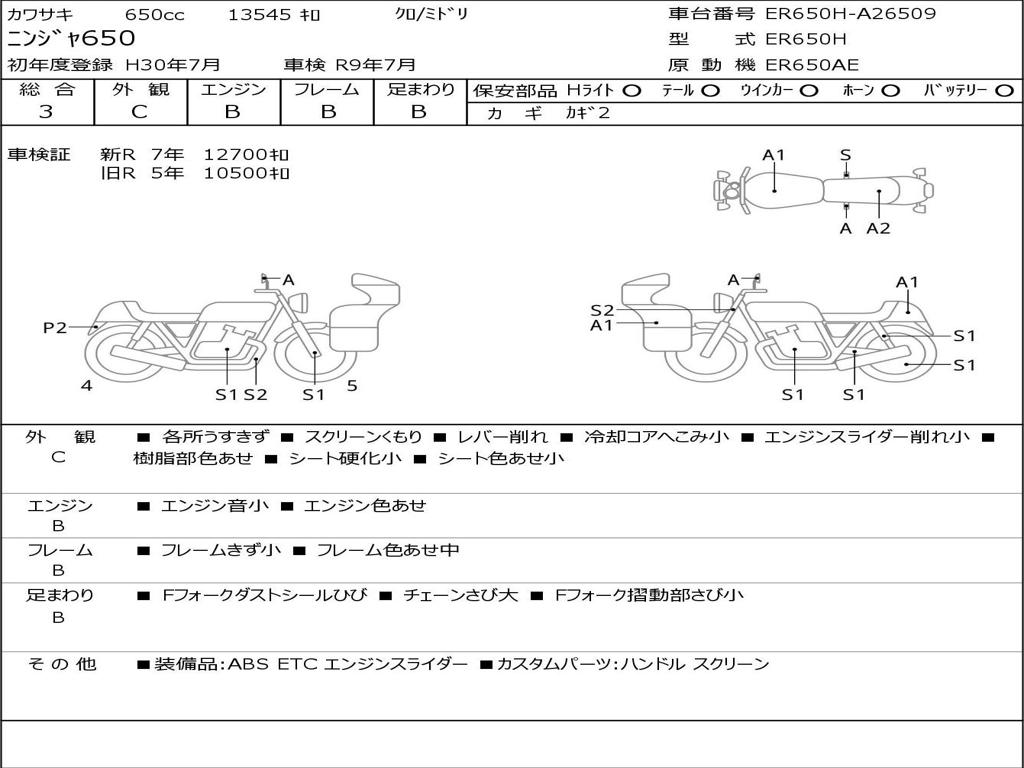 | Номер рамы / VIN | ER650H-A26509 |