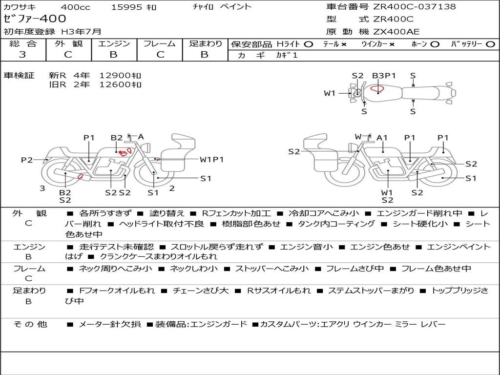 | Номер рамы / VIN | ZR400C-037138 |
