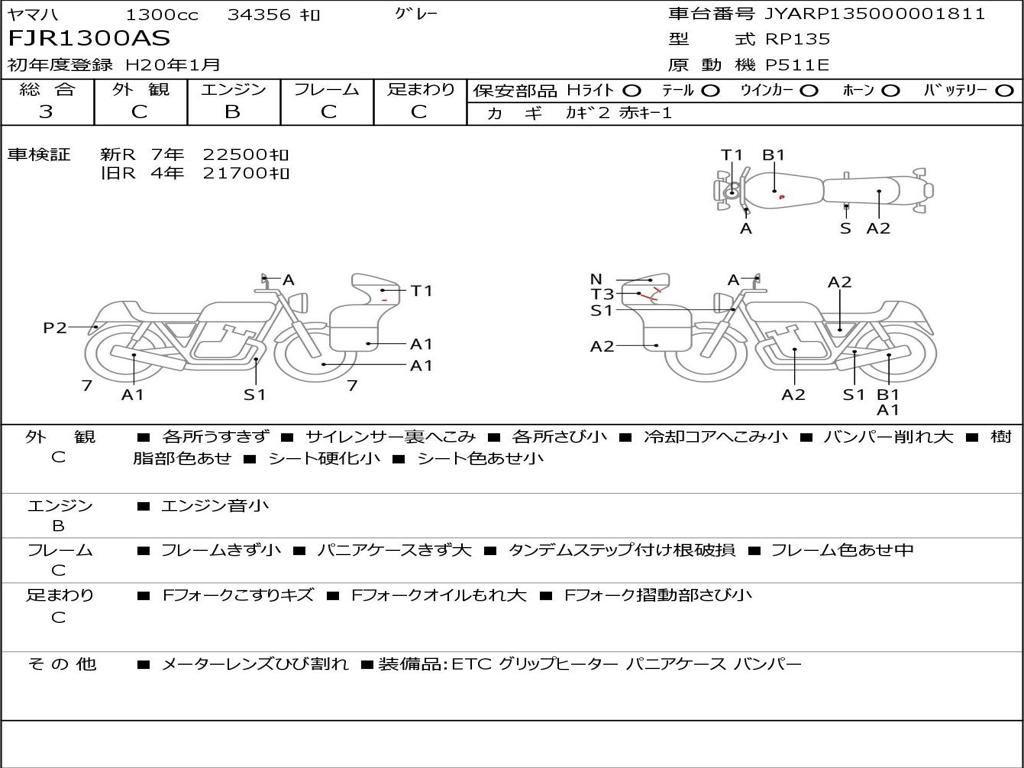 | Номер рамы / VIN | JYARP135000001811 |
