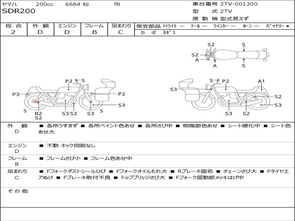 | Номер рамы / VIN | 2TV-001300 |