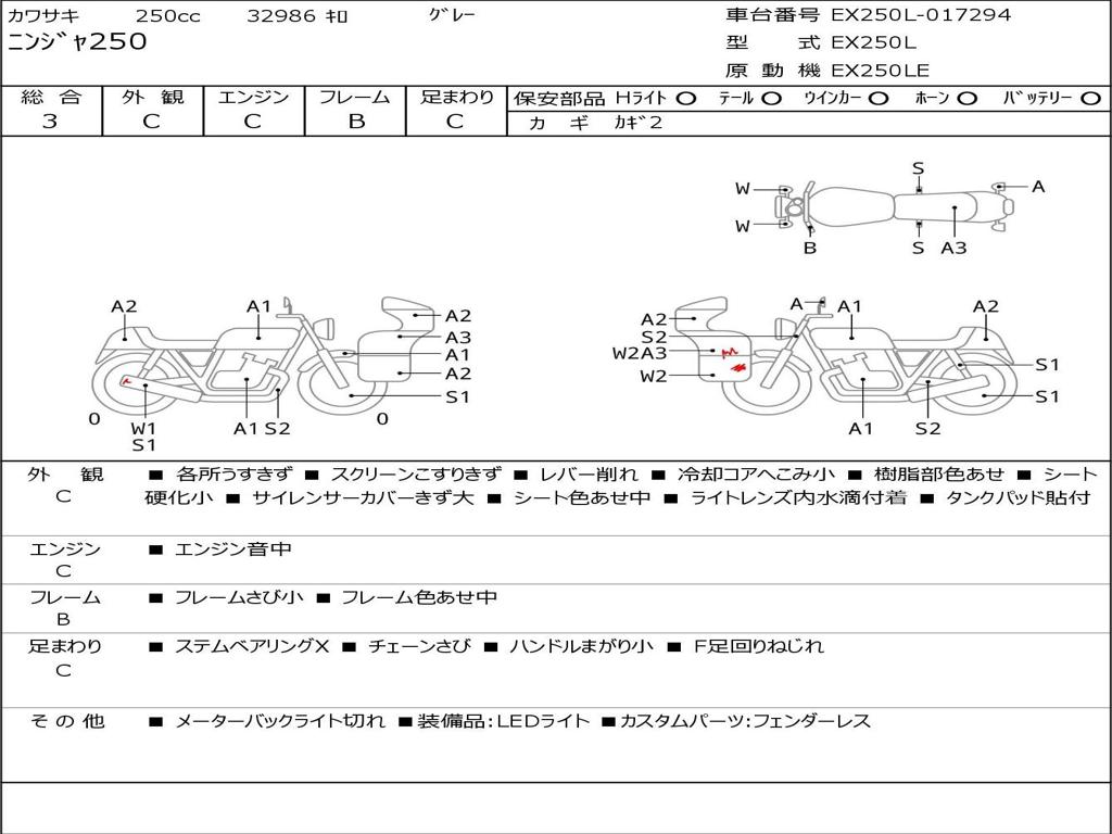 | Номер рамы / VIN | EX250L-017294 |