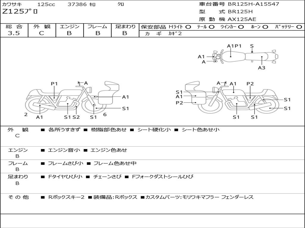 | Номер рамы / VIN | BR125H-A15547 |