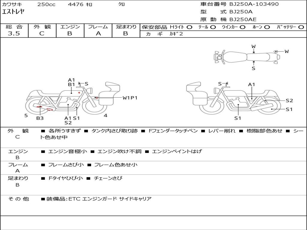 | Номер рамы / VIN | BJ250A-103490 |