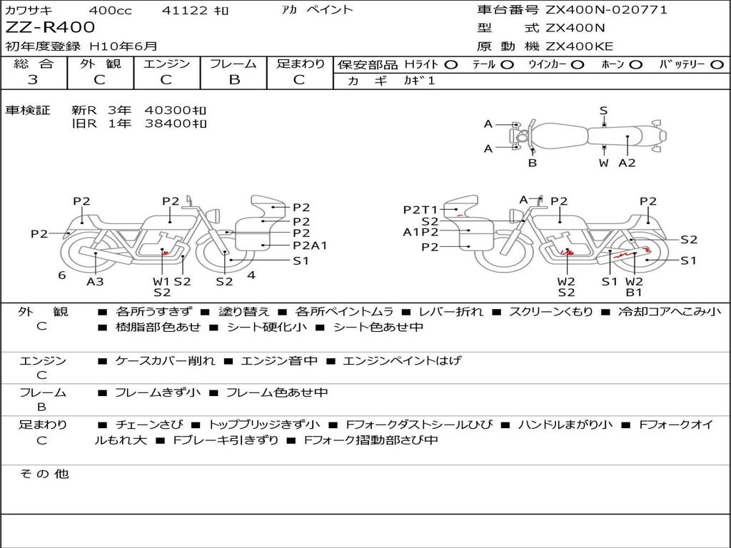 | Номер рамы / VIN | ZX400N-020771 |