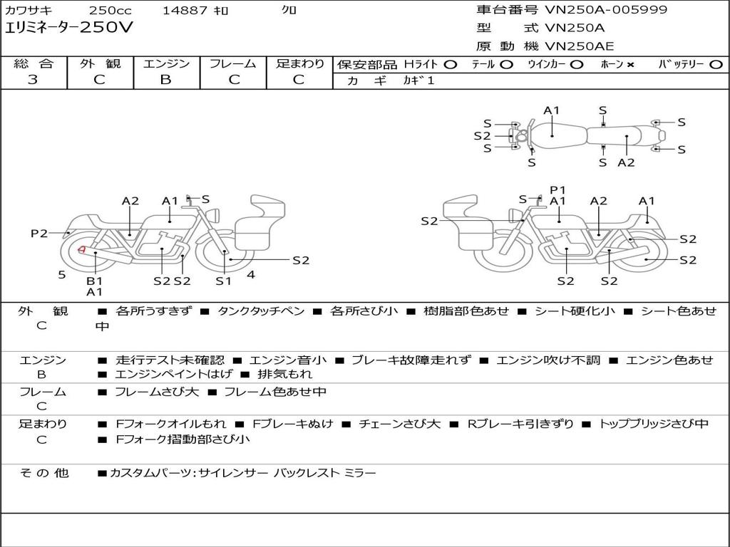 | Номер рамы / VIN | VN250A-005999 |