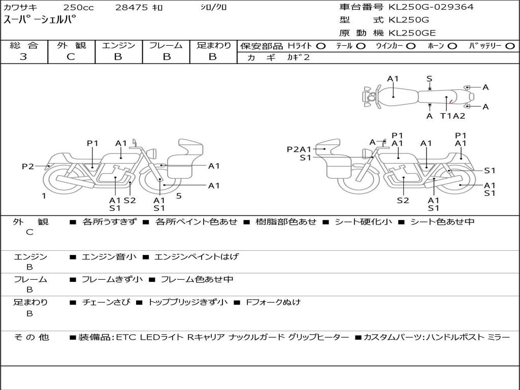 | Номер рамы / VIN | KL250G-029364 |