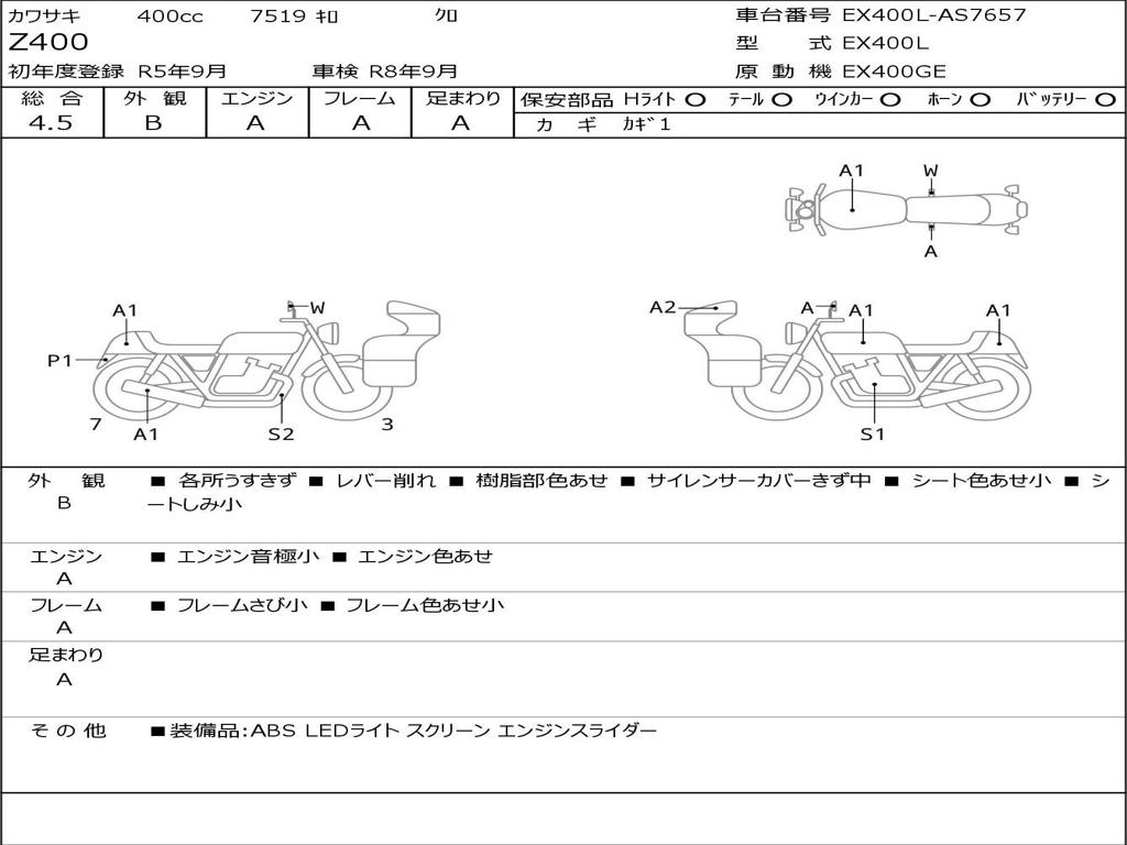 | Номер рамы / VIN | EX400L-AS7657 |