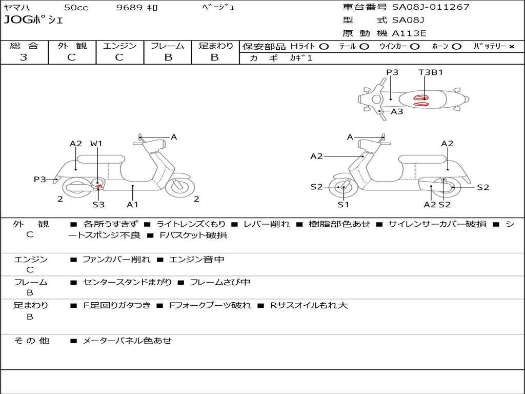 | Номер рамы / VIN | SA08J-011267 |