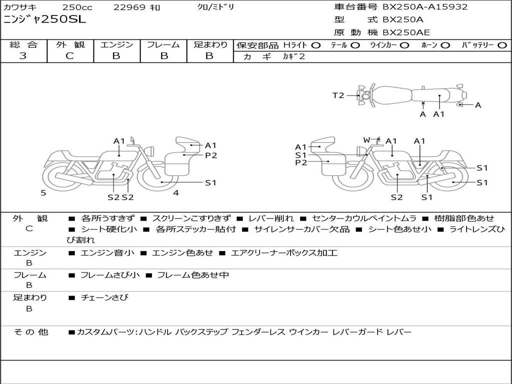 | Номер рамы / VIN | BX250A-A15932 |