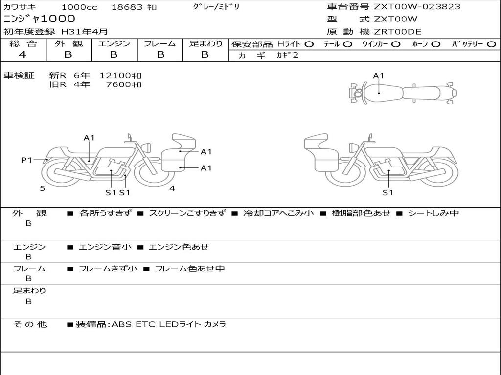 | Номер рамы / VIN | ZXT00W-023823 |