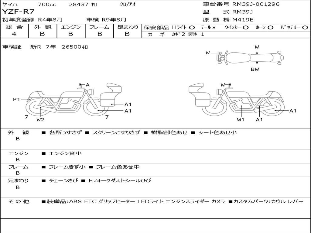 | Номер рамы / VIN | RM39J-001296 |
