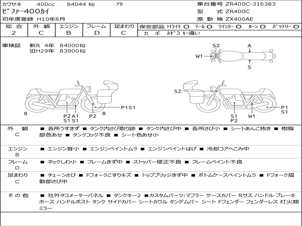 | Номер рамы / VIN | ZR400C-316383 |