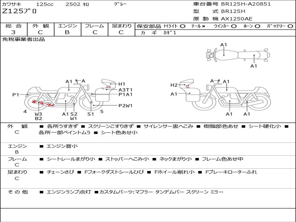 | Номер рамы / VIN | BR125H-A20851 |