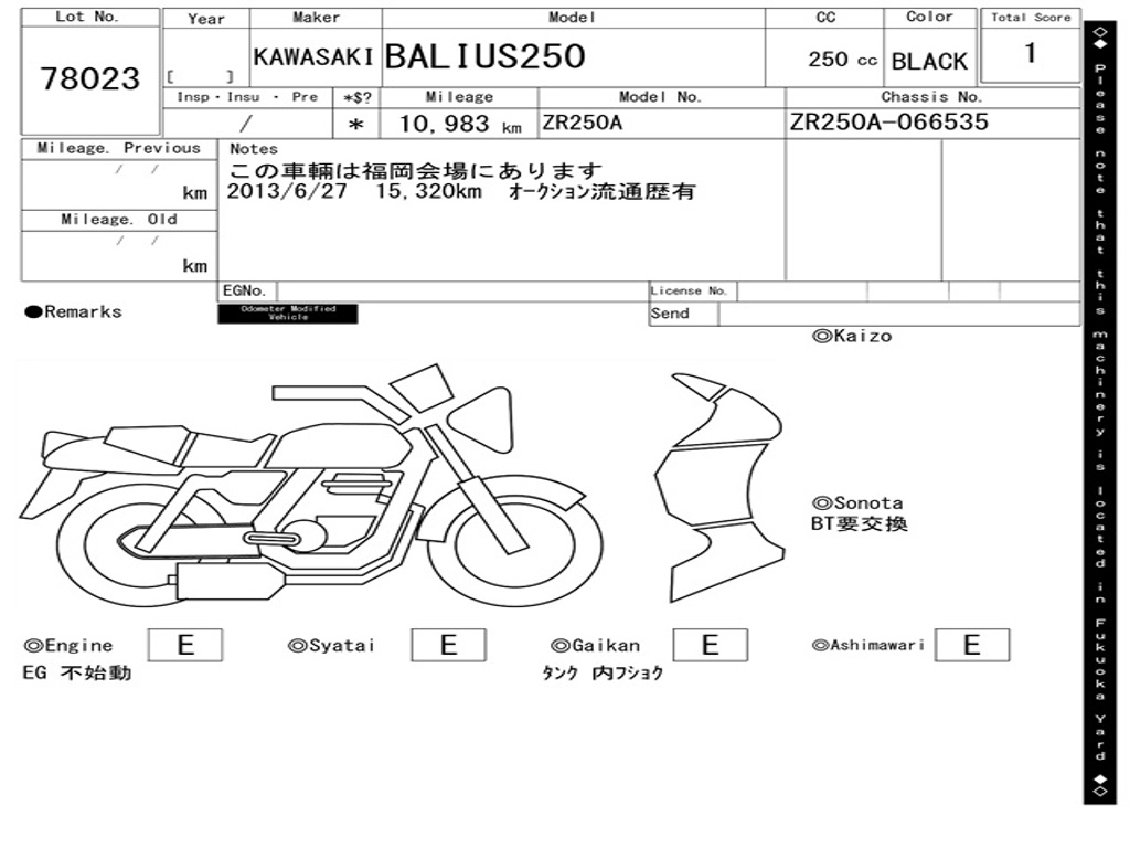 | Номер рамы / VIN | ZR250A-066535 |