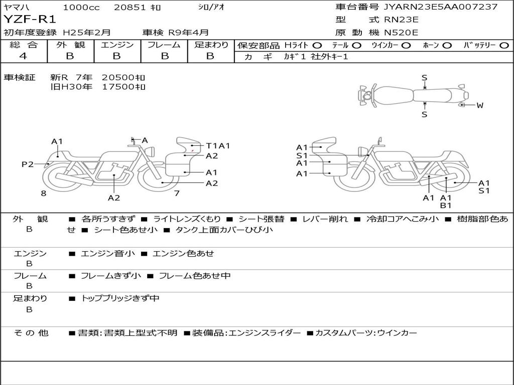 | Номер рамы / VIN | JYARN23E5AA007237 |