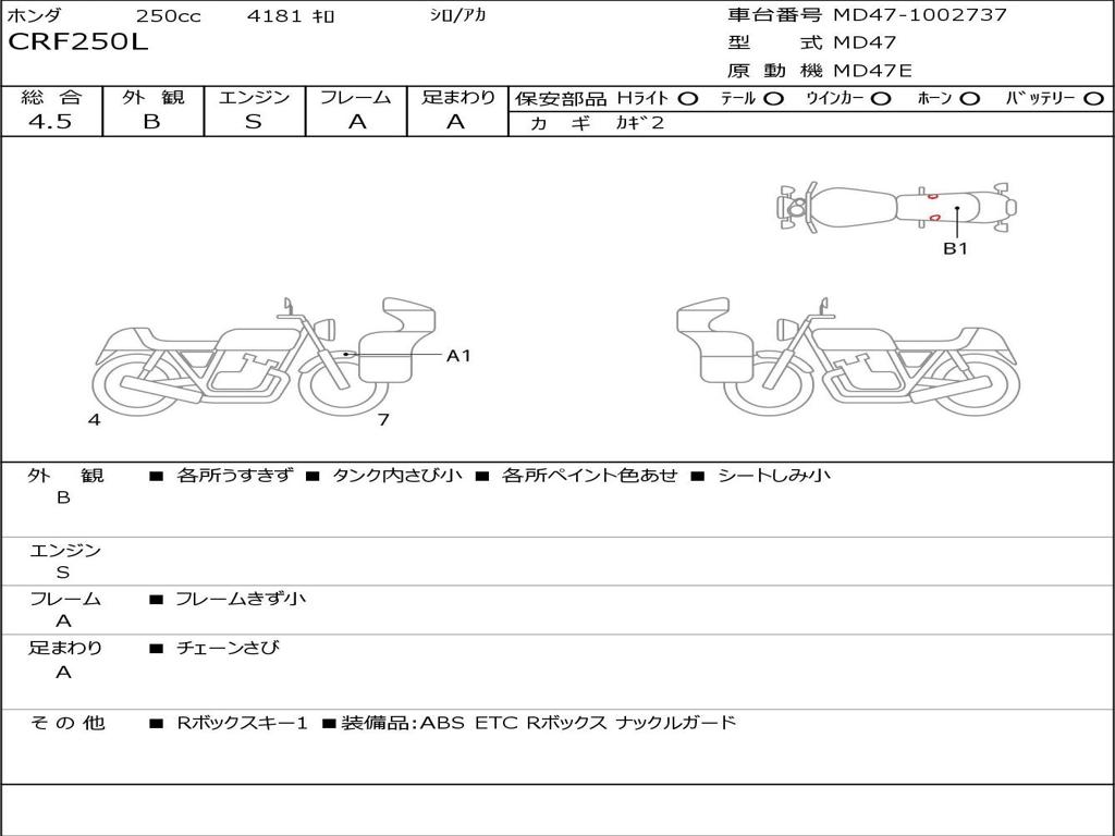 | Номер рамы / VIN | MD47-1002737 |