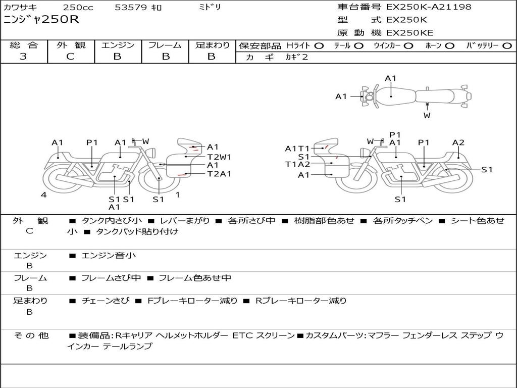 | Номер рамы / VIN | EX250K-A21198 |