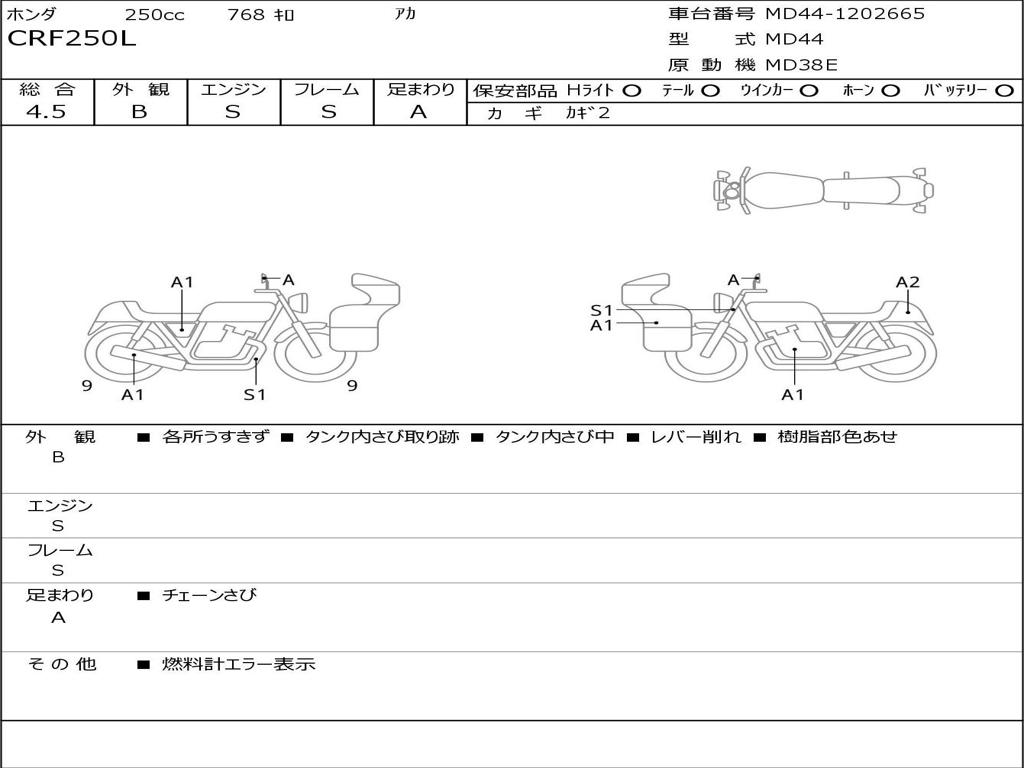| Номер рамы / VIN | MD44-1202665 |