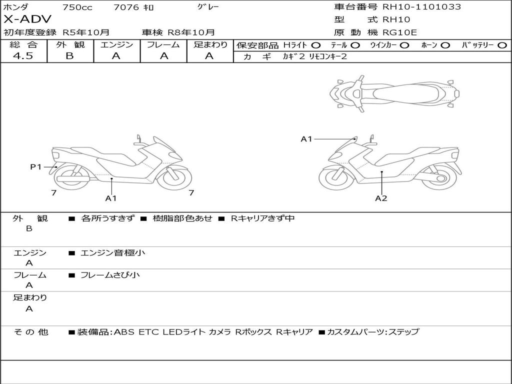| Номер рамы / VIN | RH10-1101033 |