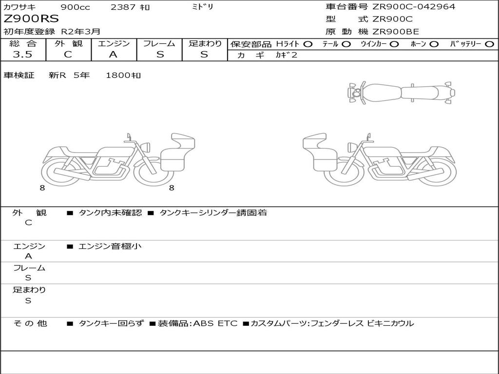 | Номер рамы / VIN | ZR900C-042964 |