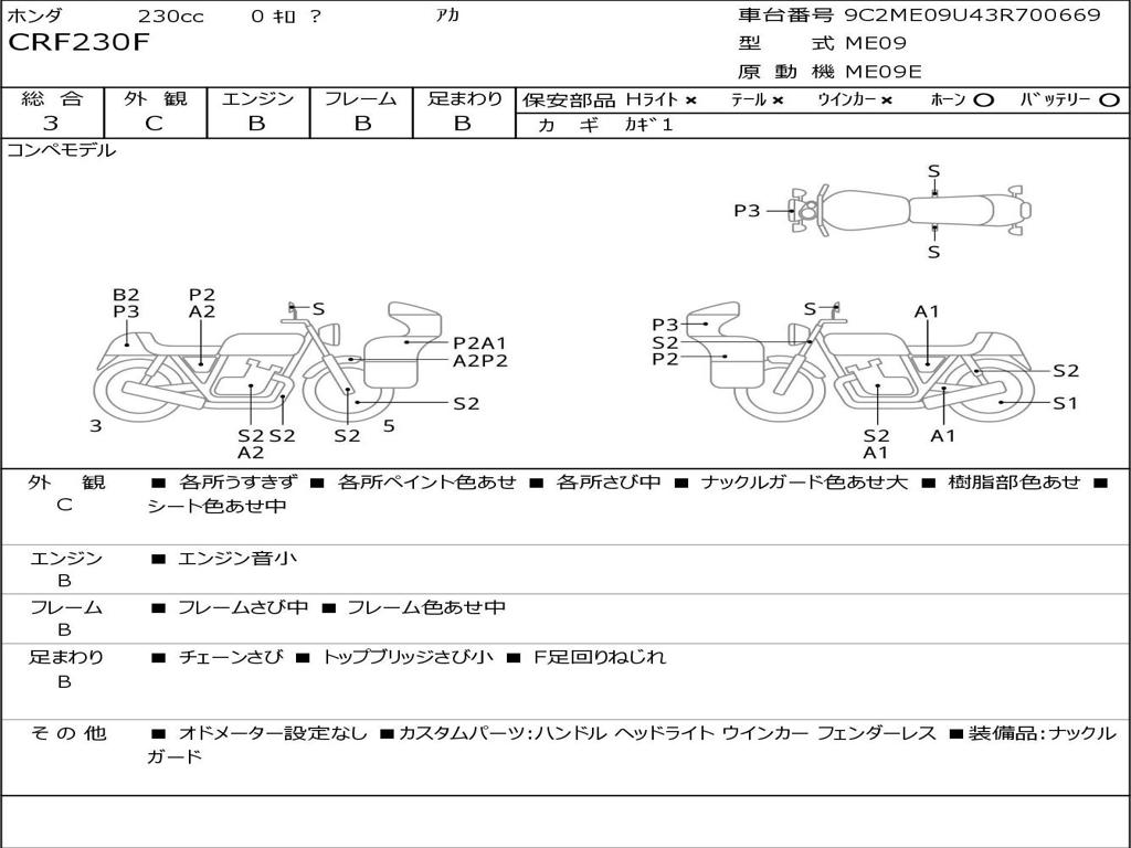 | Номер рамы / VIN | 9C2ME09U43R700669 |