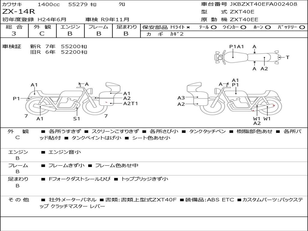 | Номер рамы / VIN | JKBZXT40EFA002408 |