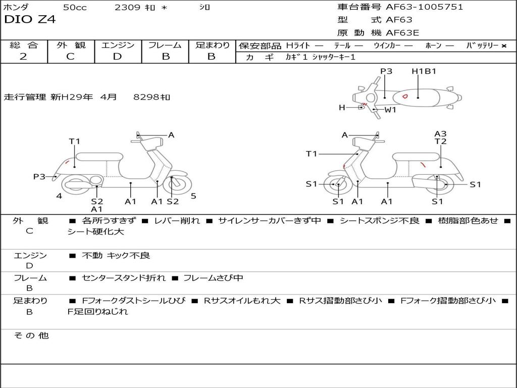 | Номер рамы / VIN | AF63-1005751 |