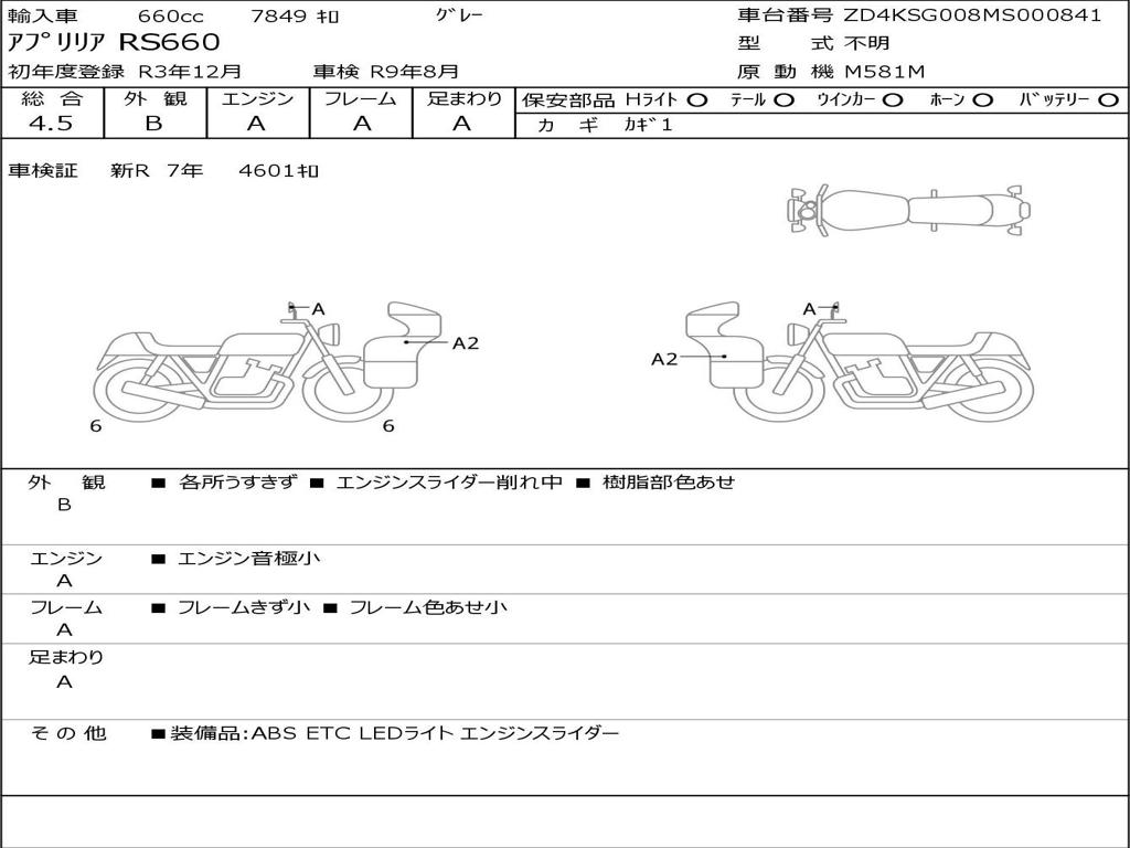 | Номер рамы / VIN | ZD4KSG008MS000841 |