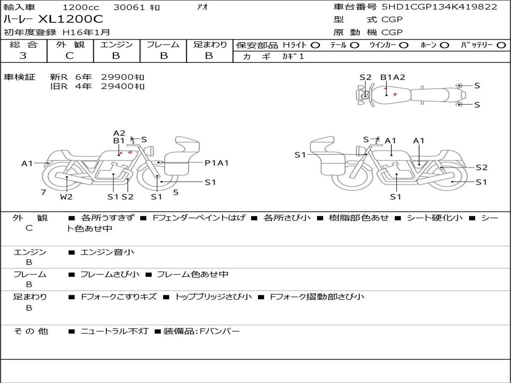 | Номер рамы / VIN | 5HD1CGP134K419822 |