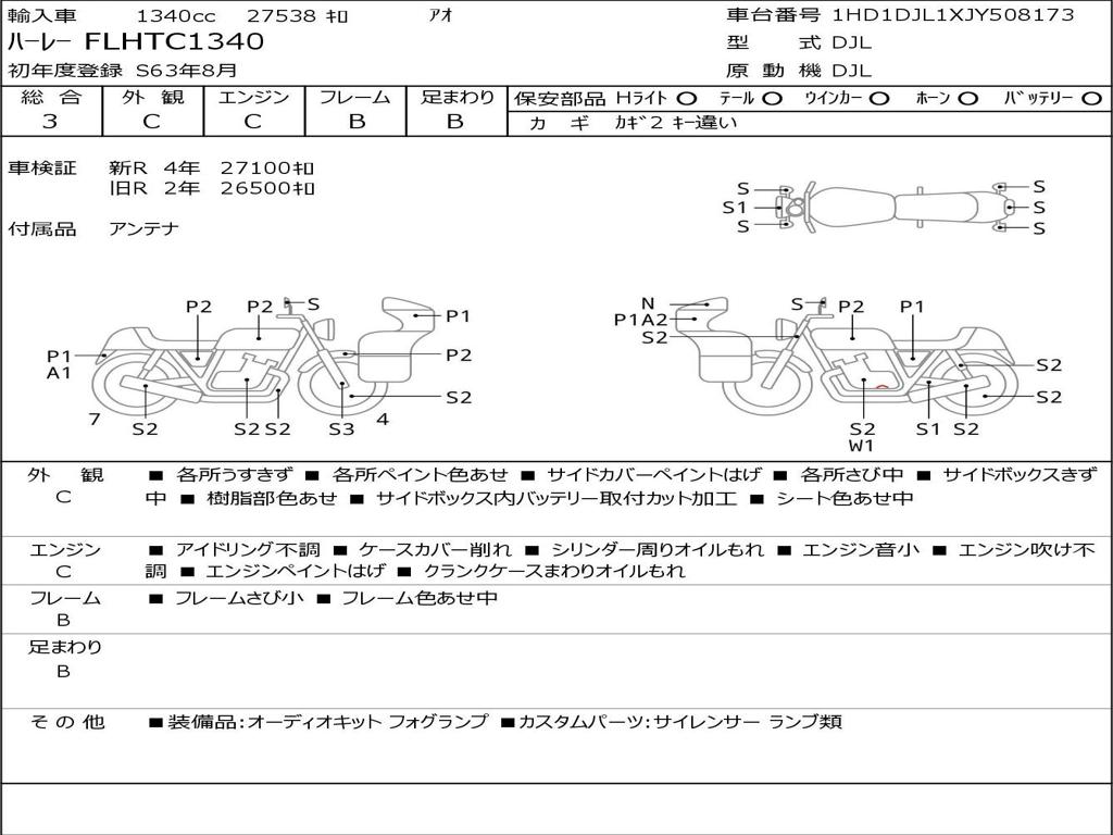 | Номер рамы / VIN | 1HD1DJL1XJY508173 |