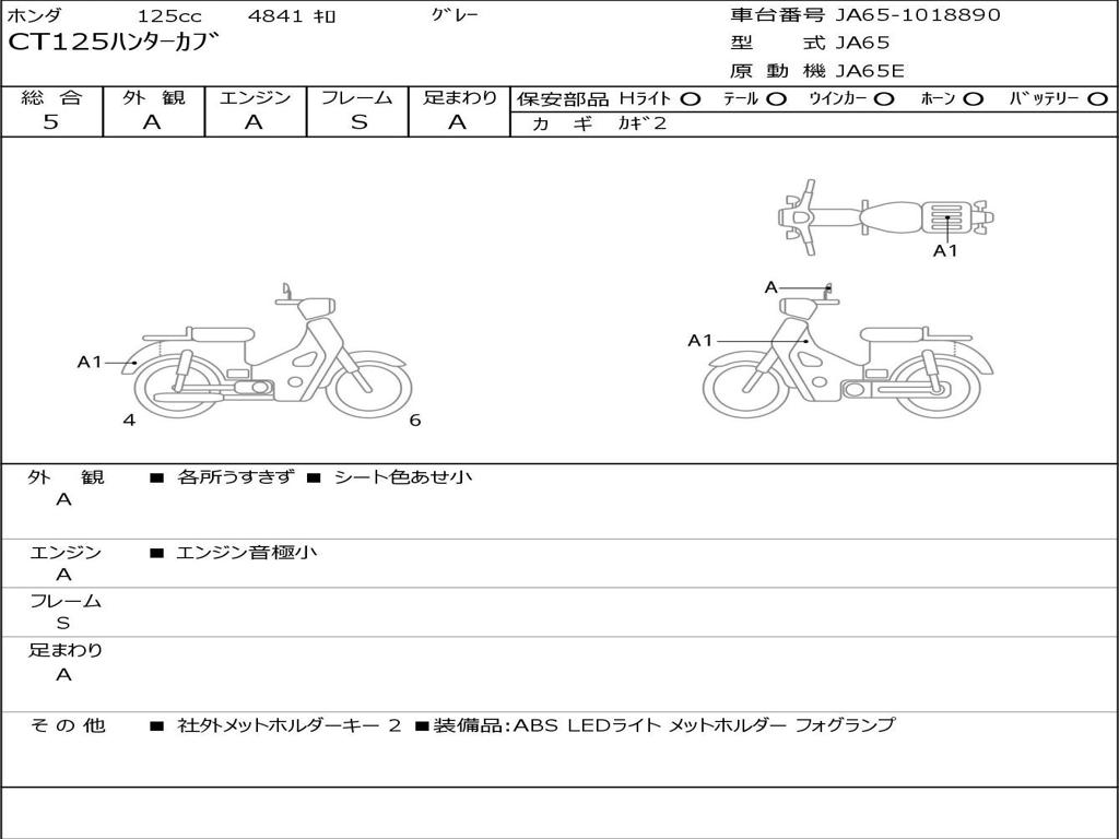 | Номер рамы / VIN | JA65-1018890 |