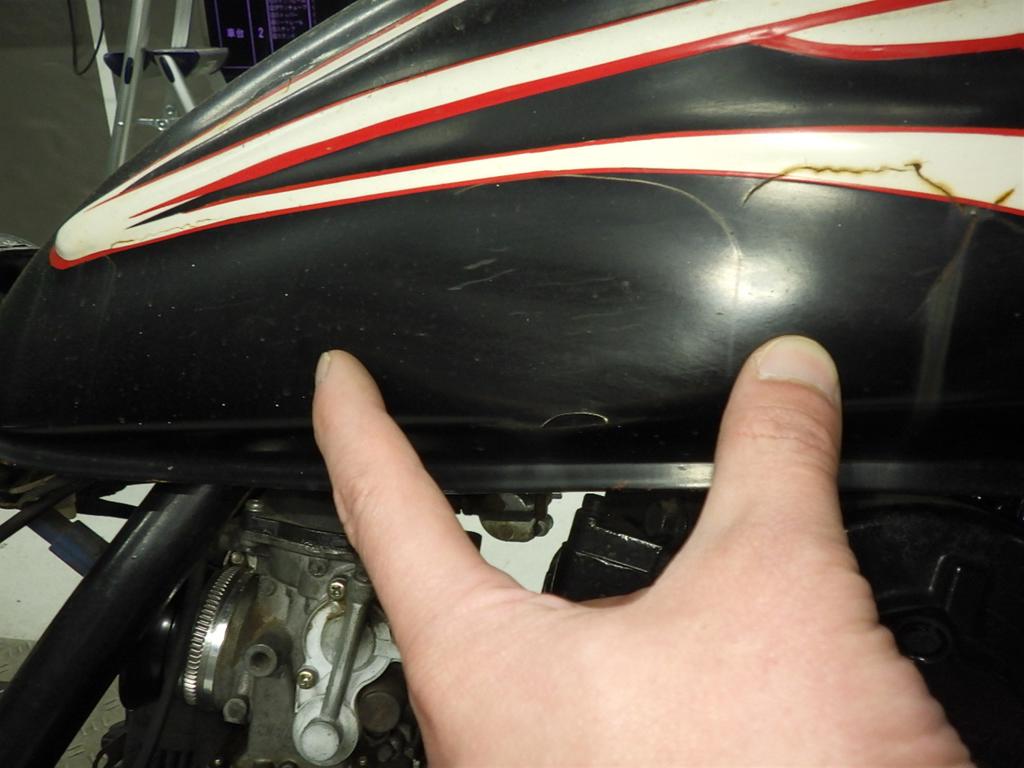 | бензобак | вмятина <много>, царапины <много>, следы коррозии, трещины <много>, восстановление, перекрашено, неисправность |