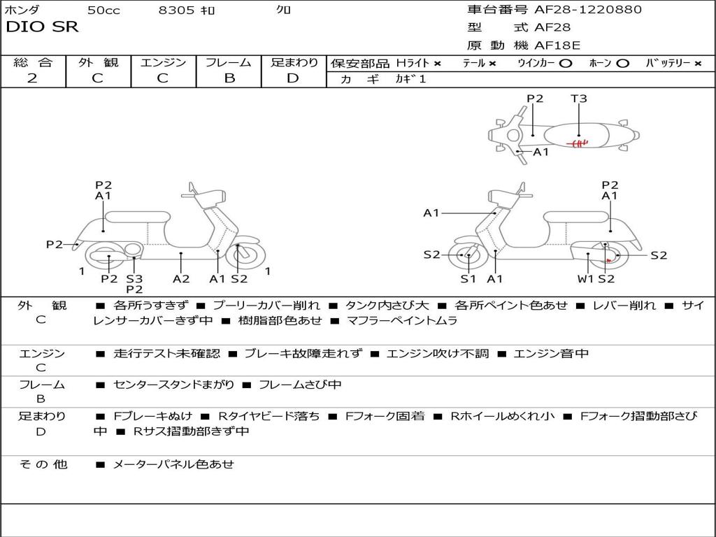 | Номер рамы / VIN | AF28-1220880 |