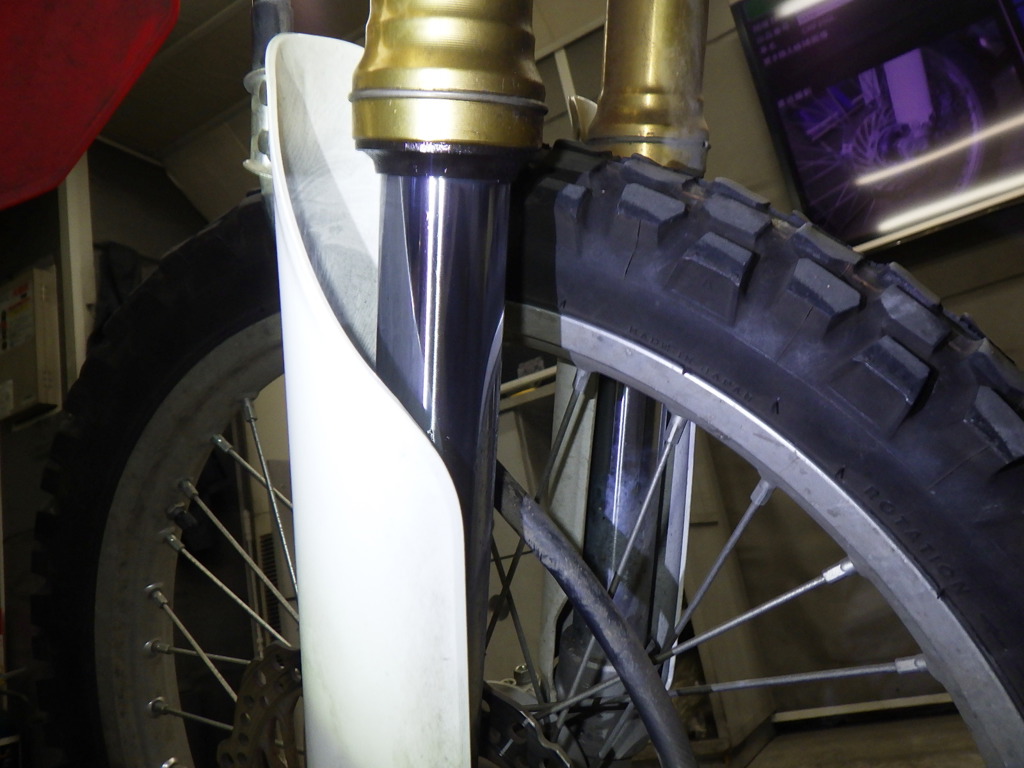 | внешняя часть вилки | царапины, следы коррозии, потек масла <много>, слабый |