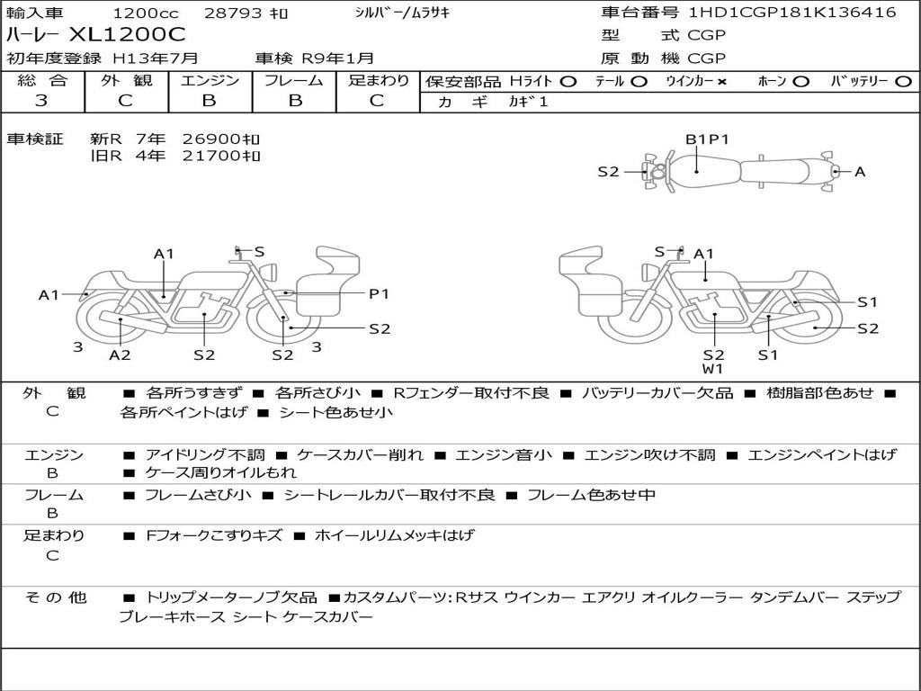 | Номер рамы / VIN | 1HD1CGP181K136416 |
