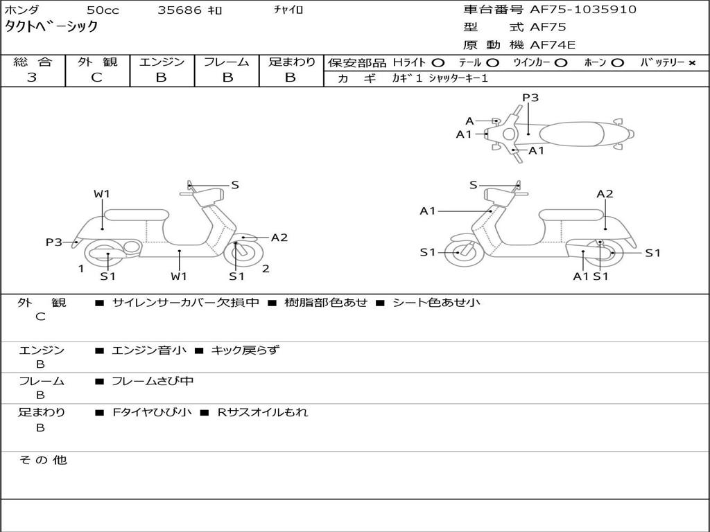 | Номер рамы / VIN | AF75-1035910 |