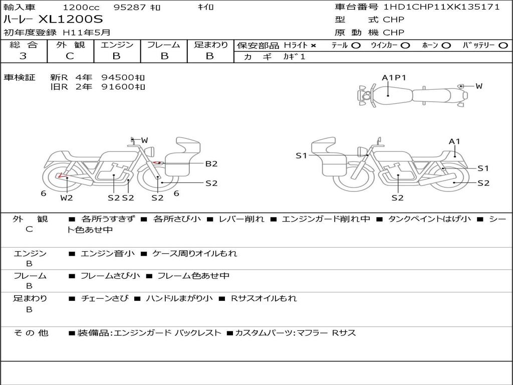 | Номер рамы / VIN | 1HD1CHP11XK135171 |