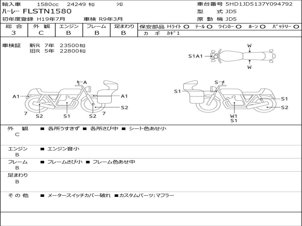 | Номер рамы / VIN | 5HD1JD5137Y094792 |