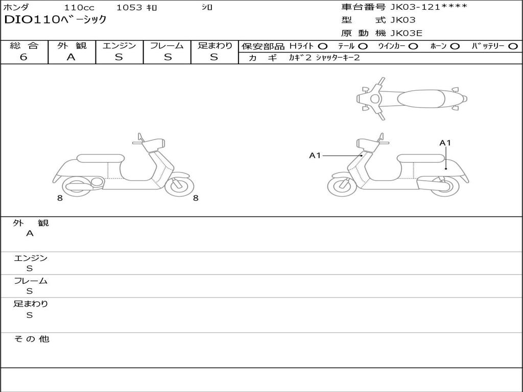 | Номер рамы / VIN | JK03-1219809 |