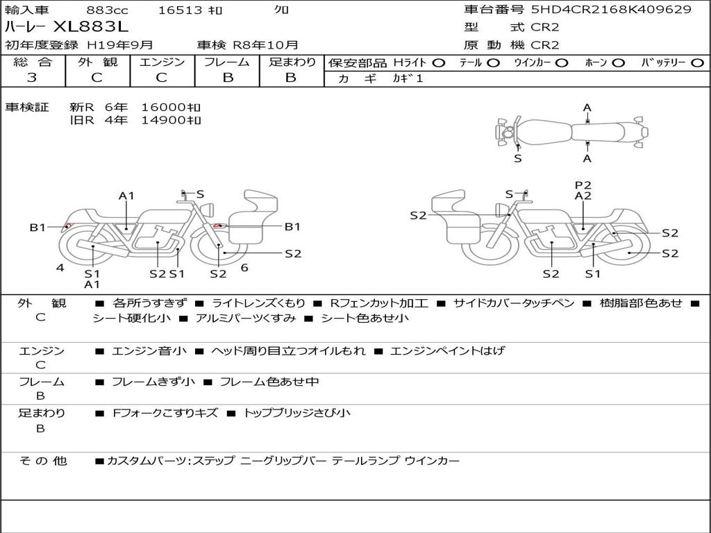 | Номер рамы / VIN | 5HD4CR2168K409629 |