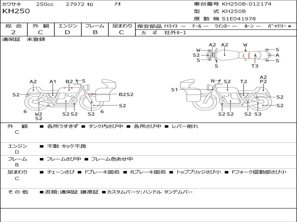 | Номер рамы / VIN | KH250B-012174 |