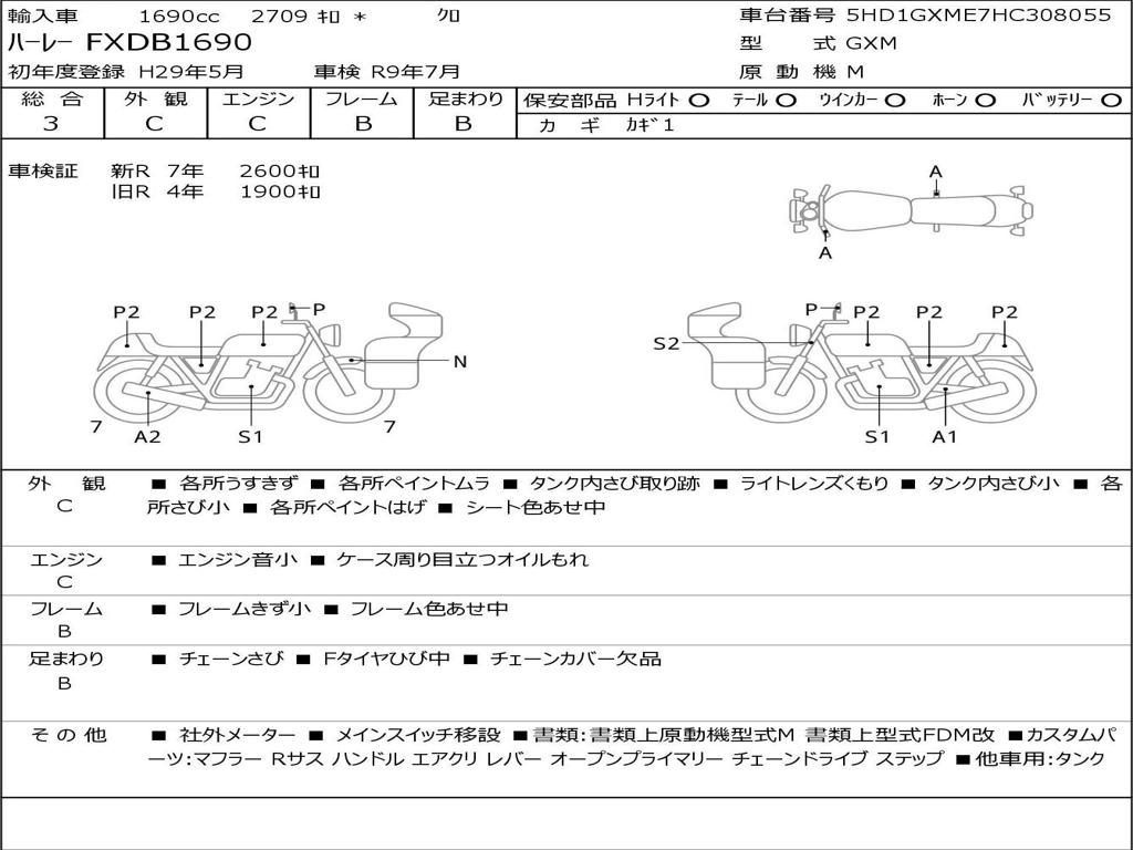 | Номер рамы / VIN | 5HD1GXME7HC308055 |