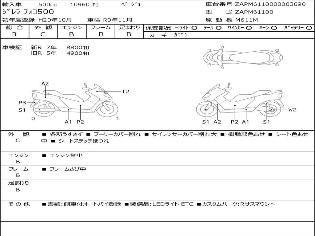 | Номер рамы / VIN | ZAPM6110000003690 |