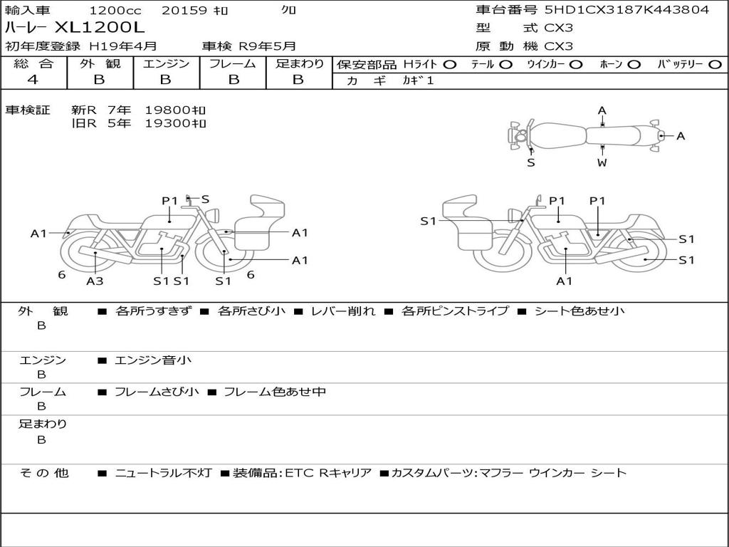 | Номер рамы / VIN | 5HD1CX3187K443804 |