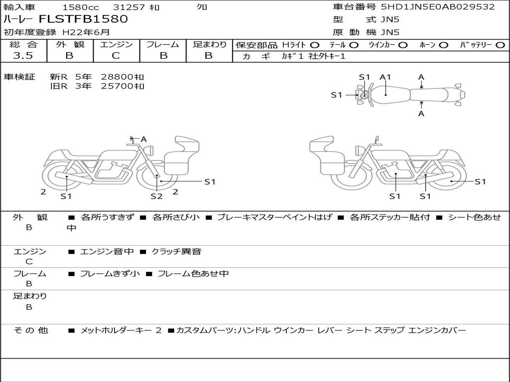 | Номер рамы / VIN | 5HD1JN5E0AB029532 |