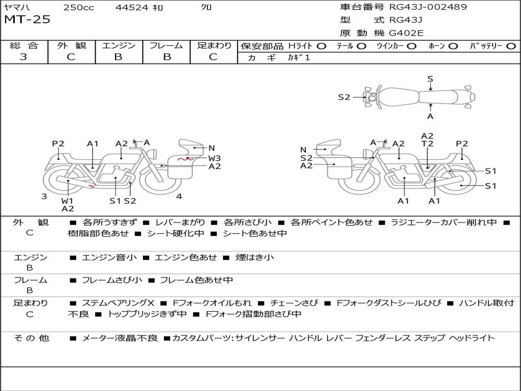 | Номер рамы / VIN | RG43J-002489 |