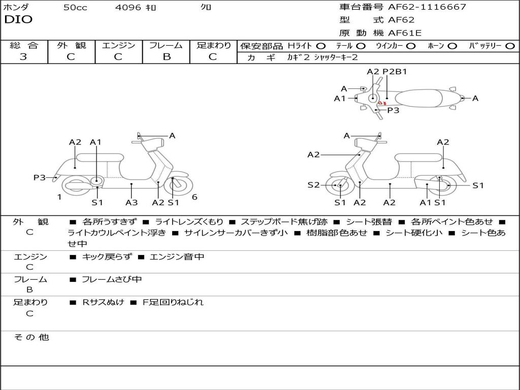 | Номер рамы / VIN | AF62-1116667 |