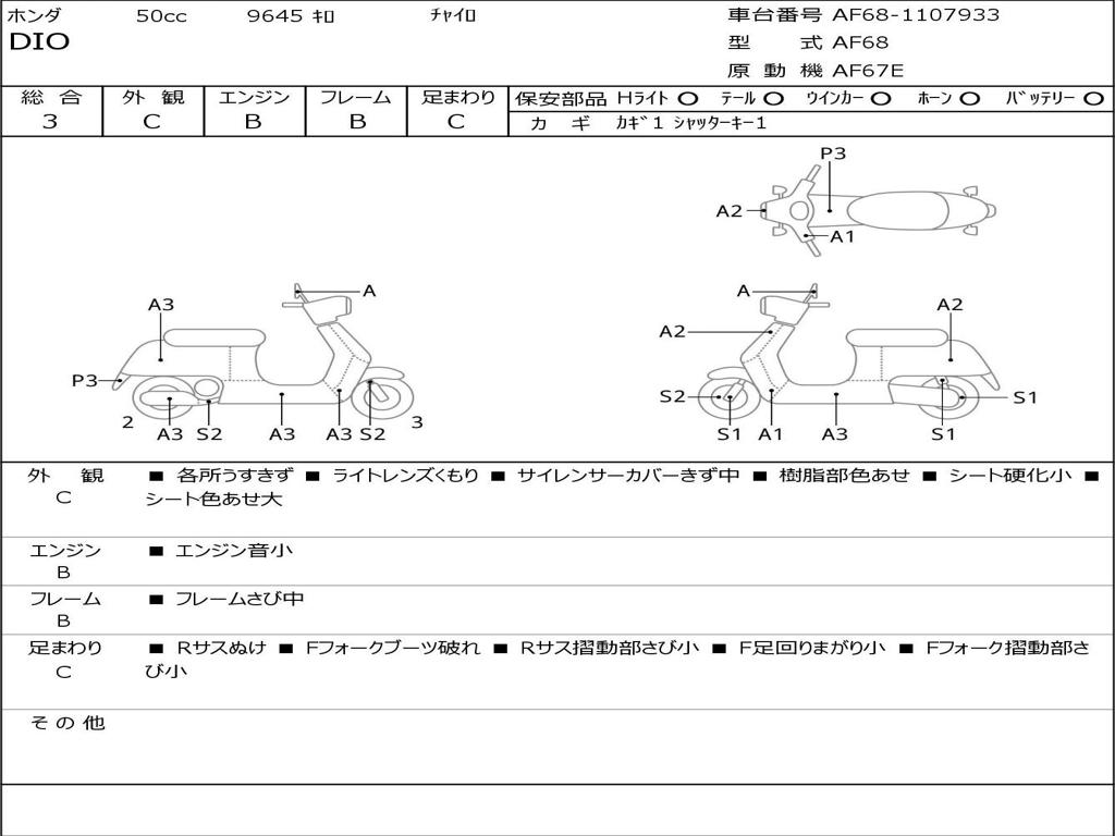 | Номер рамы / VIN | AF68-1107933 |