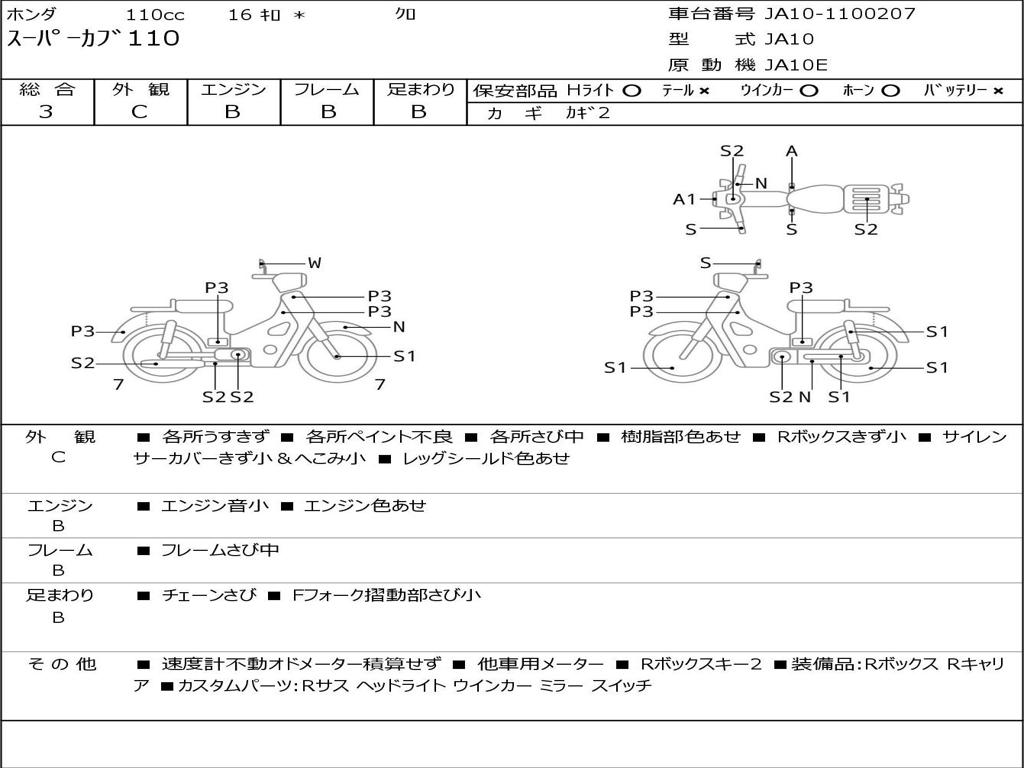 | Номер рамы / VIN | JA10-1100207 |